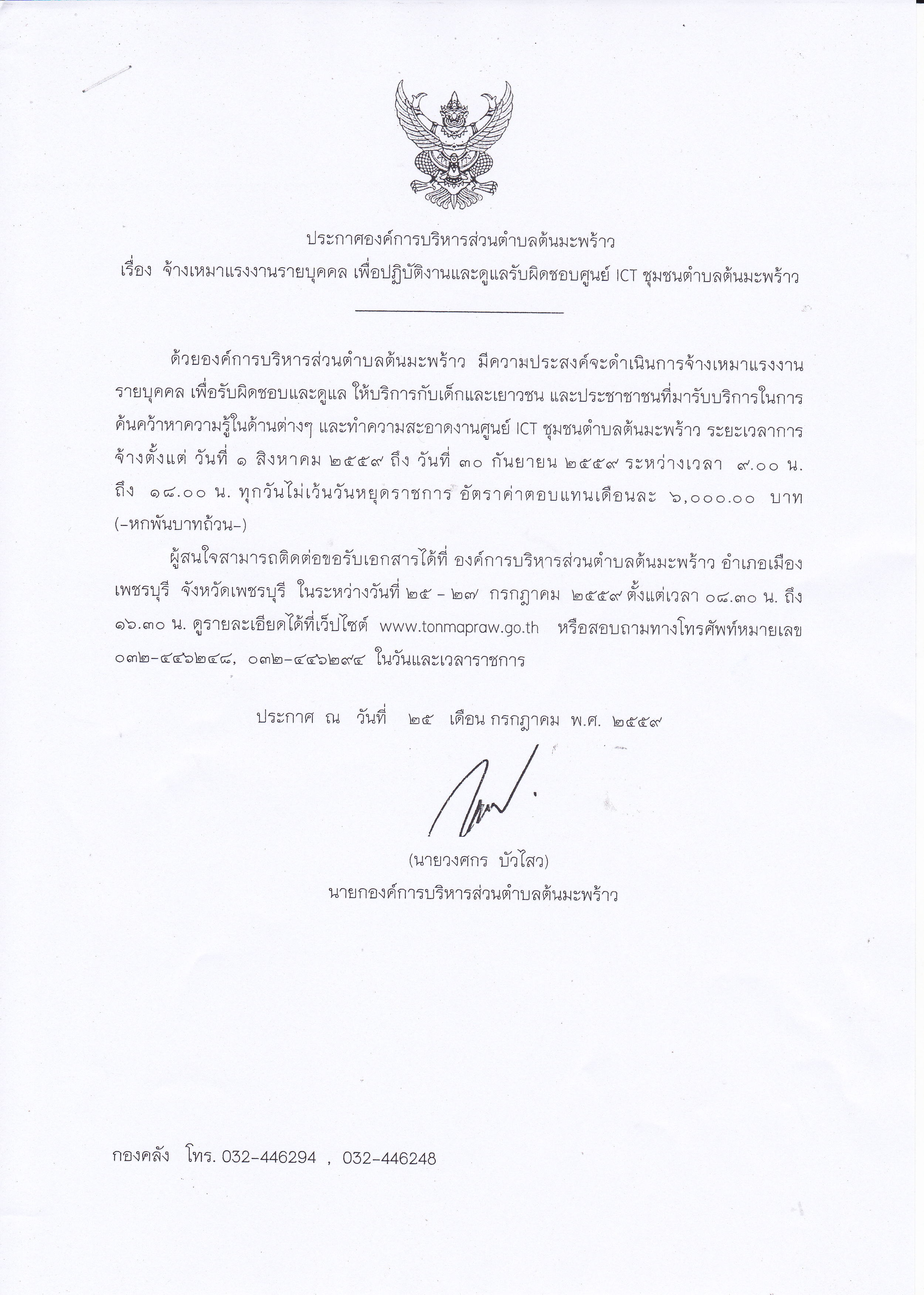 องค์การบริหารส่วนตำบลต้นมะพร้าว อำเภอเมือง จังหวัดเพชรบุรี โทร 032-771576